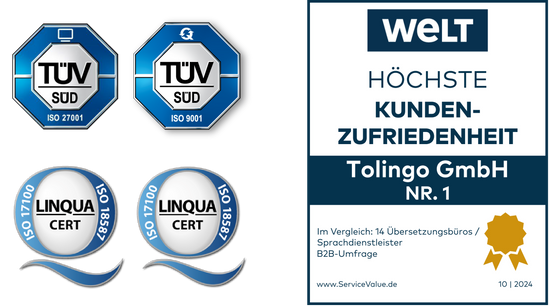 Junto con nuestros socios tolingo y Beglaubigung24, nos hemos ganado la confianza de más de 140.000 clientes.
