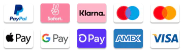 Elige entre PayPal, Klarna, transferencia instantánea, Apple Pay o tarjeta de crédito.